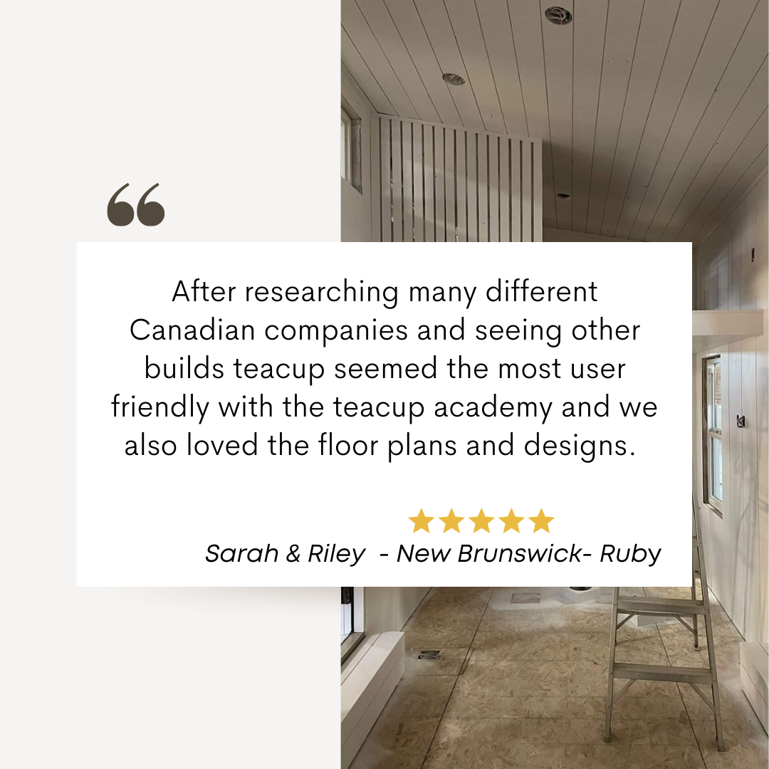 "After researching many different Canadian companies and seeing other builds teacup seemed the most user-friendly with the teacup academy and we also loved the floor plans and designs."